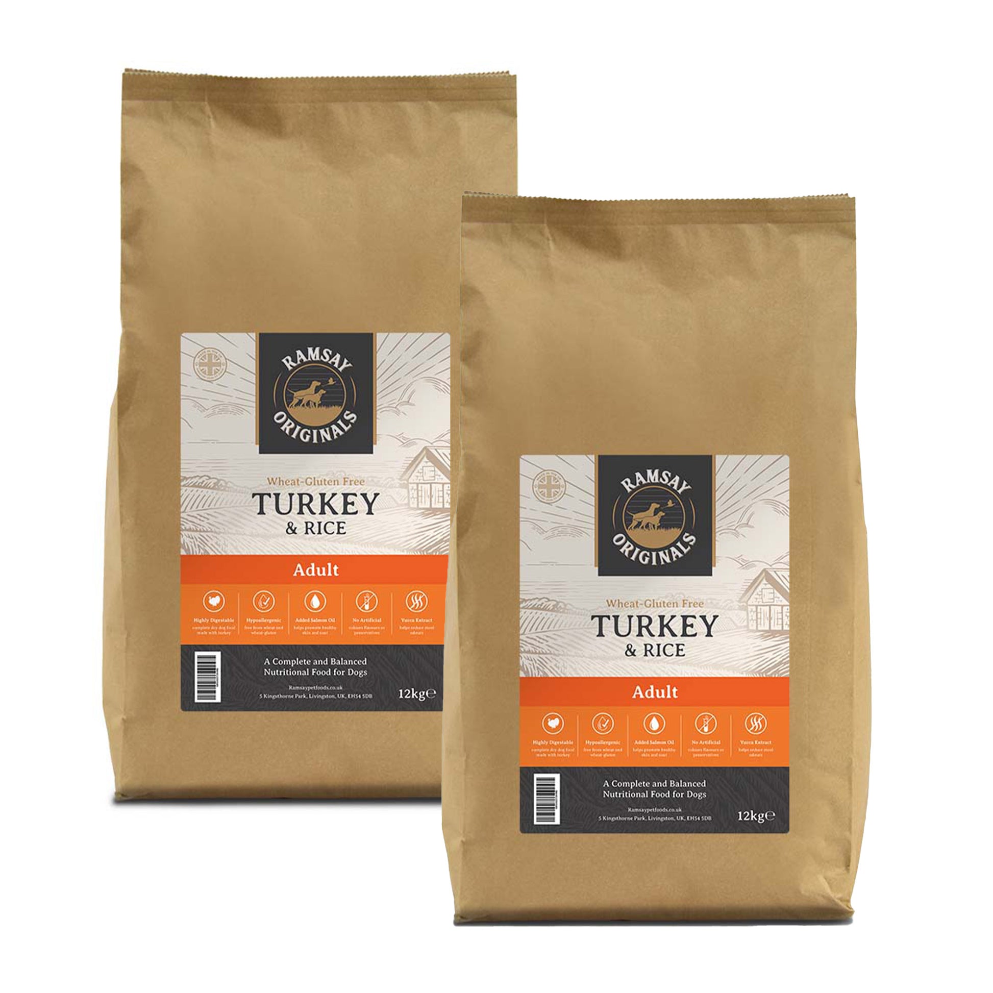 Our Ramsay Originals Adult Turkey & Rice recipe is highly palatable using a single protein source, as well as rice, glucosamine, chondroitin and yucca extract to create a hypoallergenic dry food that is free from gluten to help digestion, joints and improve skin and coat issues. It is free from wheat and wheat-gluten, with no added artificial colours, flavours or preservatives. With only the highest quality ingredients used, our Ramsay Originals Gluten Free range is a complete and balanced recipe that provides all the nourishment that your dog needs to enjoy optimal health and vitality.