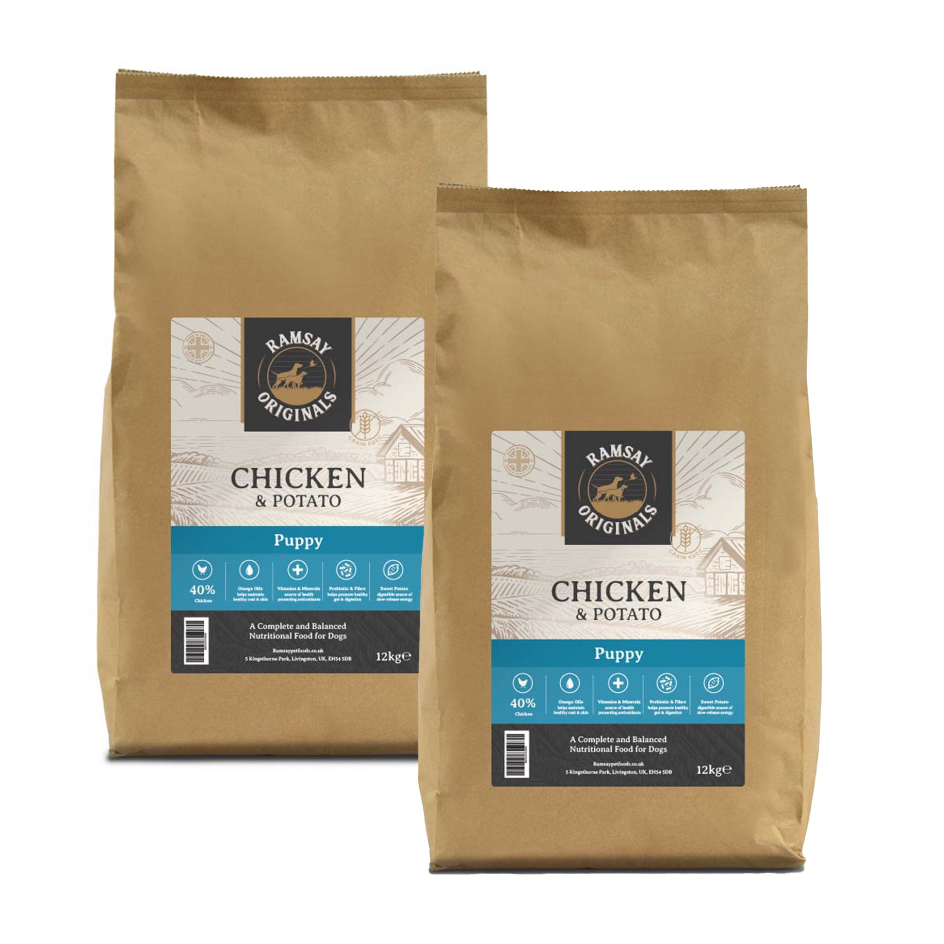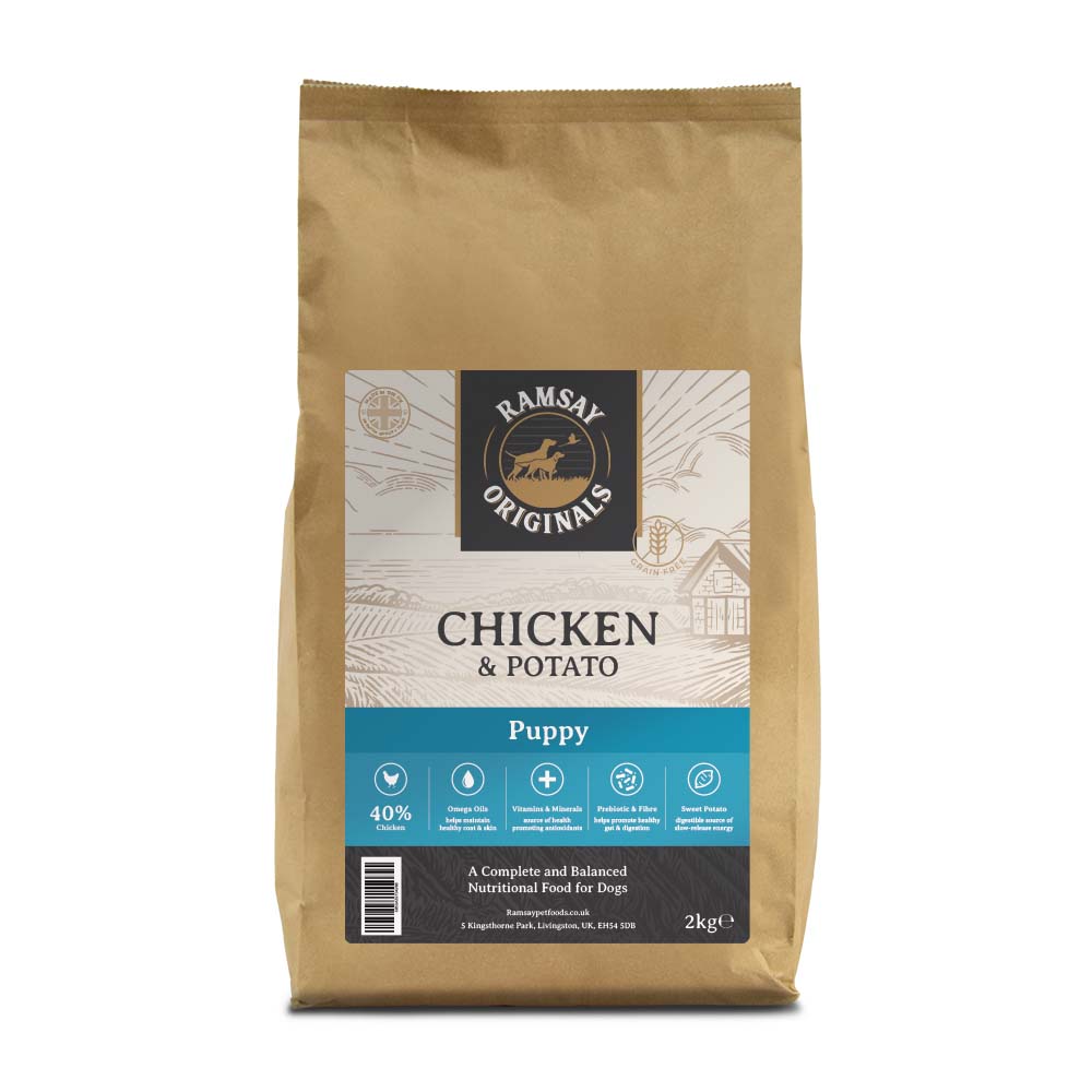 Ramsay Originals Grain Free Puppy Dog Food with Chicken & Potato is a nutritionally complete dry food that has been carefully formulated to meet the nutritional requirements of puppies. Ramsay Originals is a cereal-free diet with no added wheat or gluten and has the added advantage of being hypoallergenic which is great for puppies with skin and digestive sensitivities. This diet also includes our blend of vitamins and minerals to help your puppy enjoy optimal health and vitality.